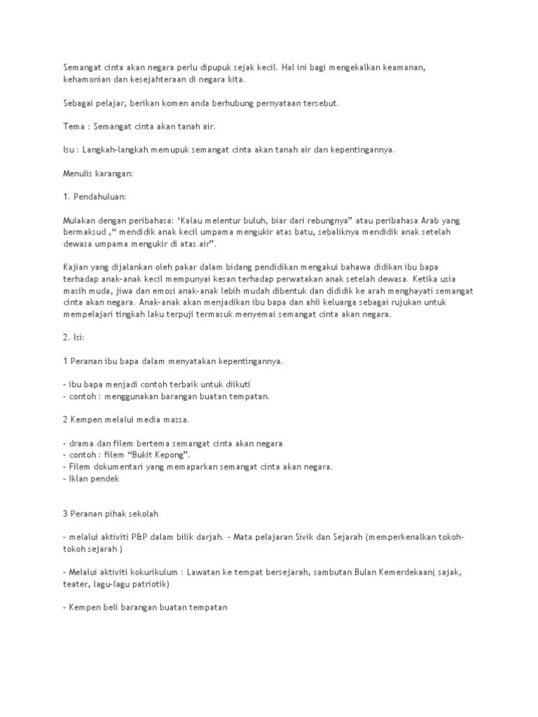 Contoh karangan pt3 kepentingan semangat patriotisme negara malaysia mencapai kemerdekaan pada 31 ogos 1957. Di samping itu, kita juga perlu mengikuti semangat cinta akan negara yang. Contoh karangan semangat cinta akan negara contoh karangan semangat patriotik gamis murni cute766 kita juga tak akan sudi jika bangsa kita .